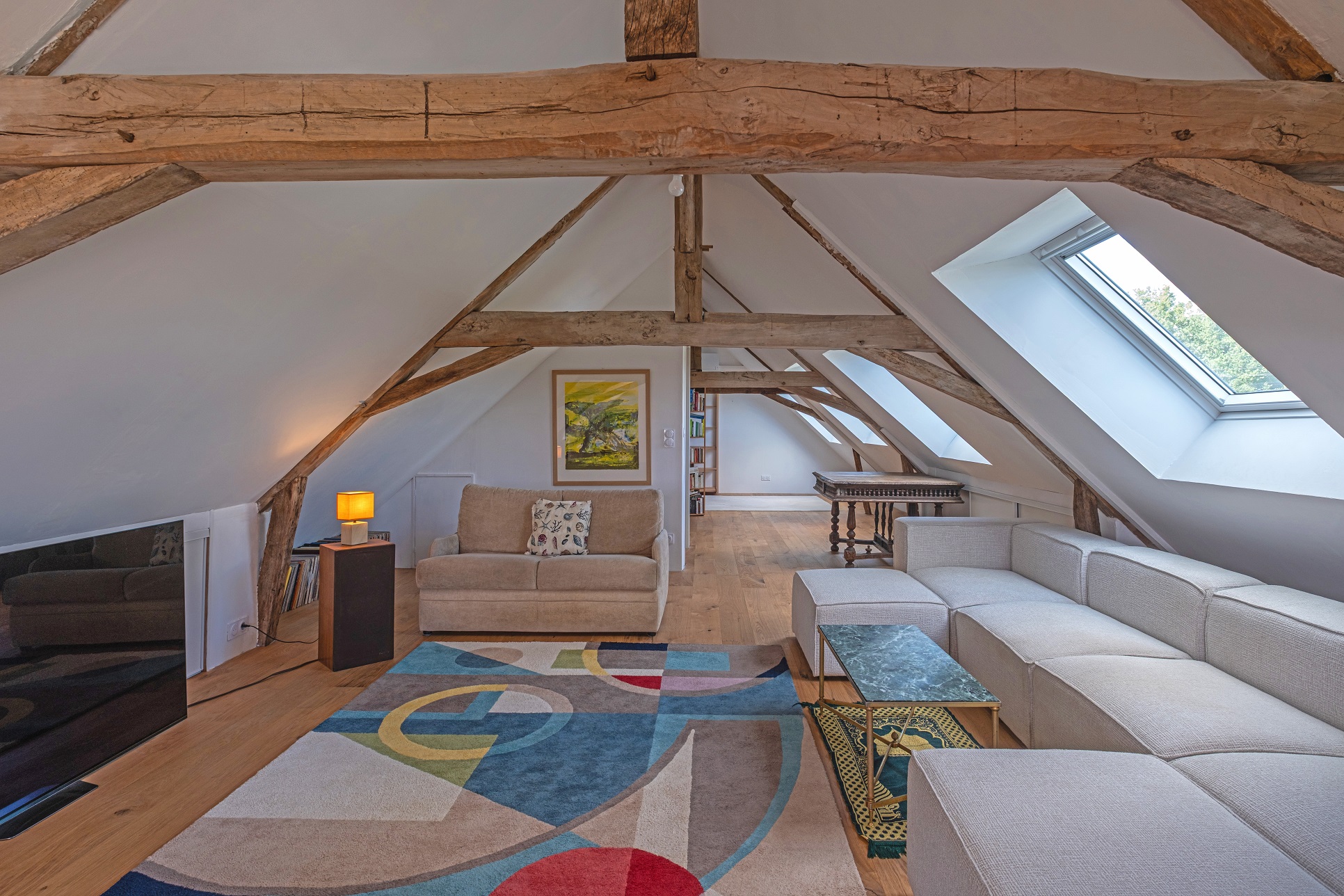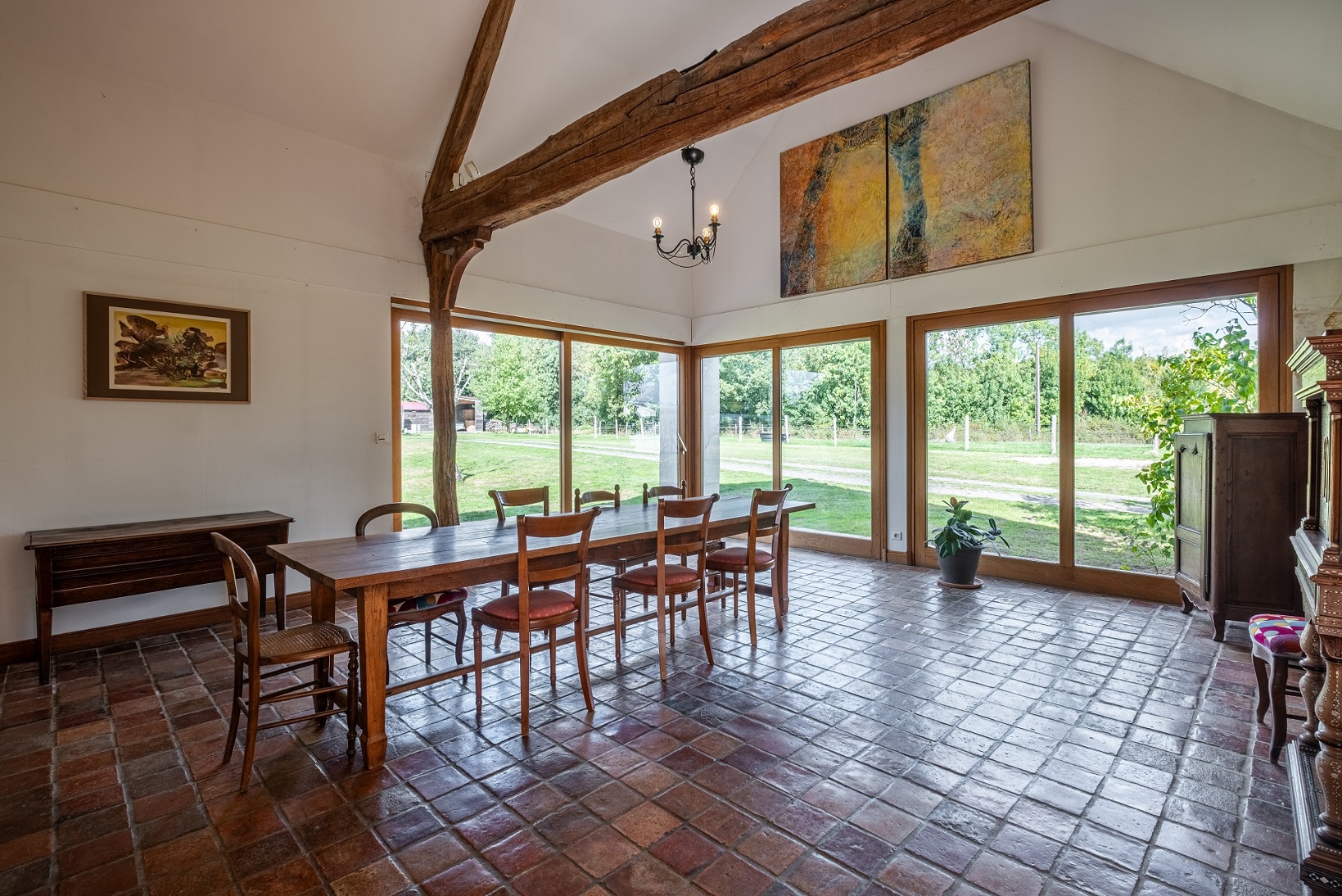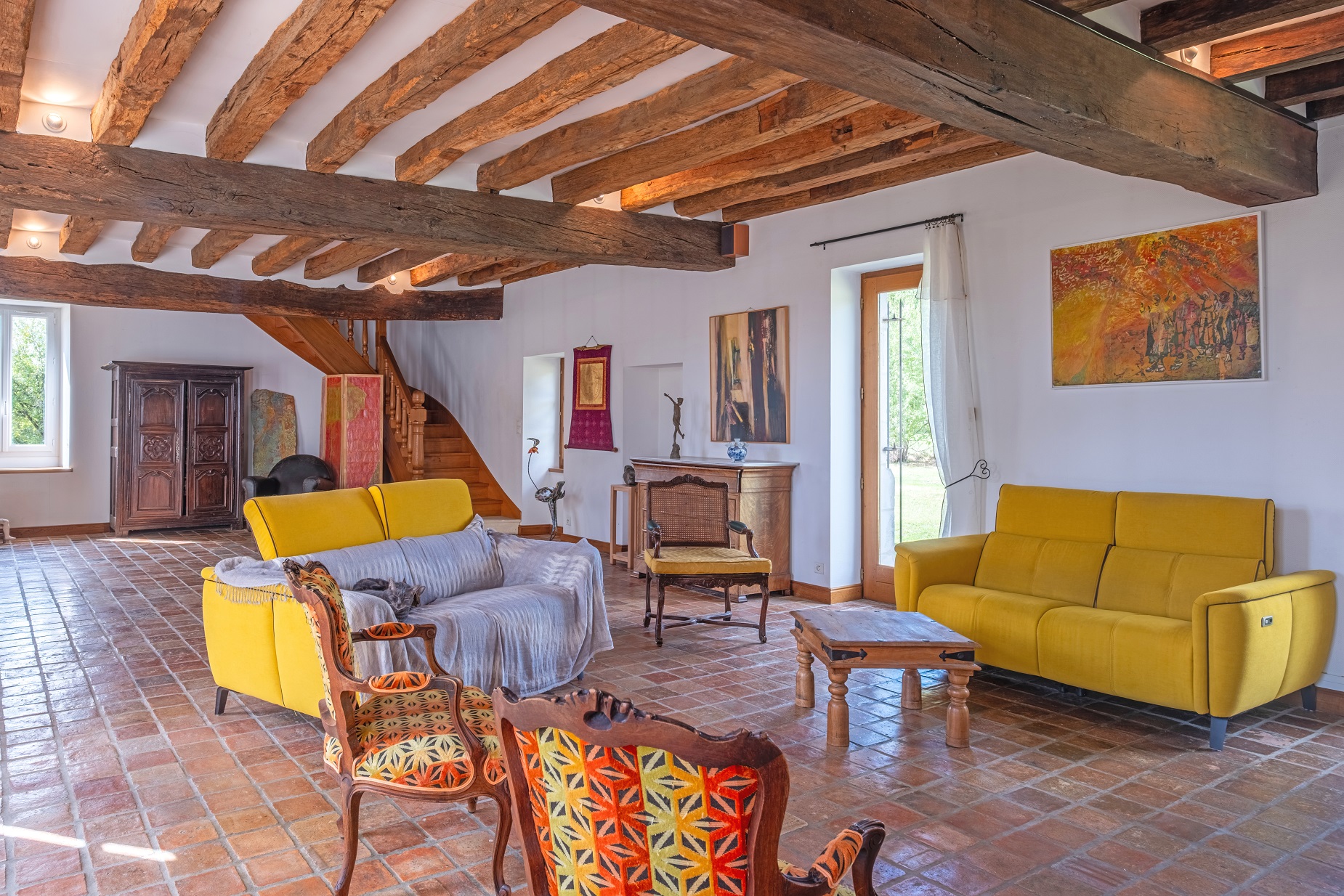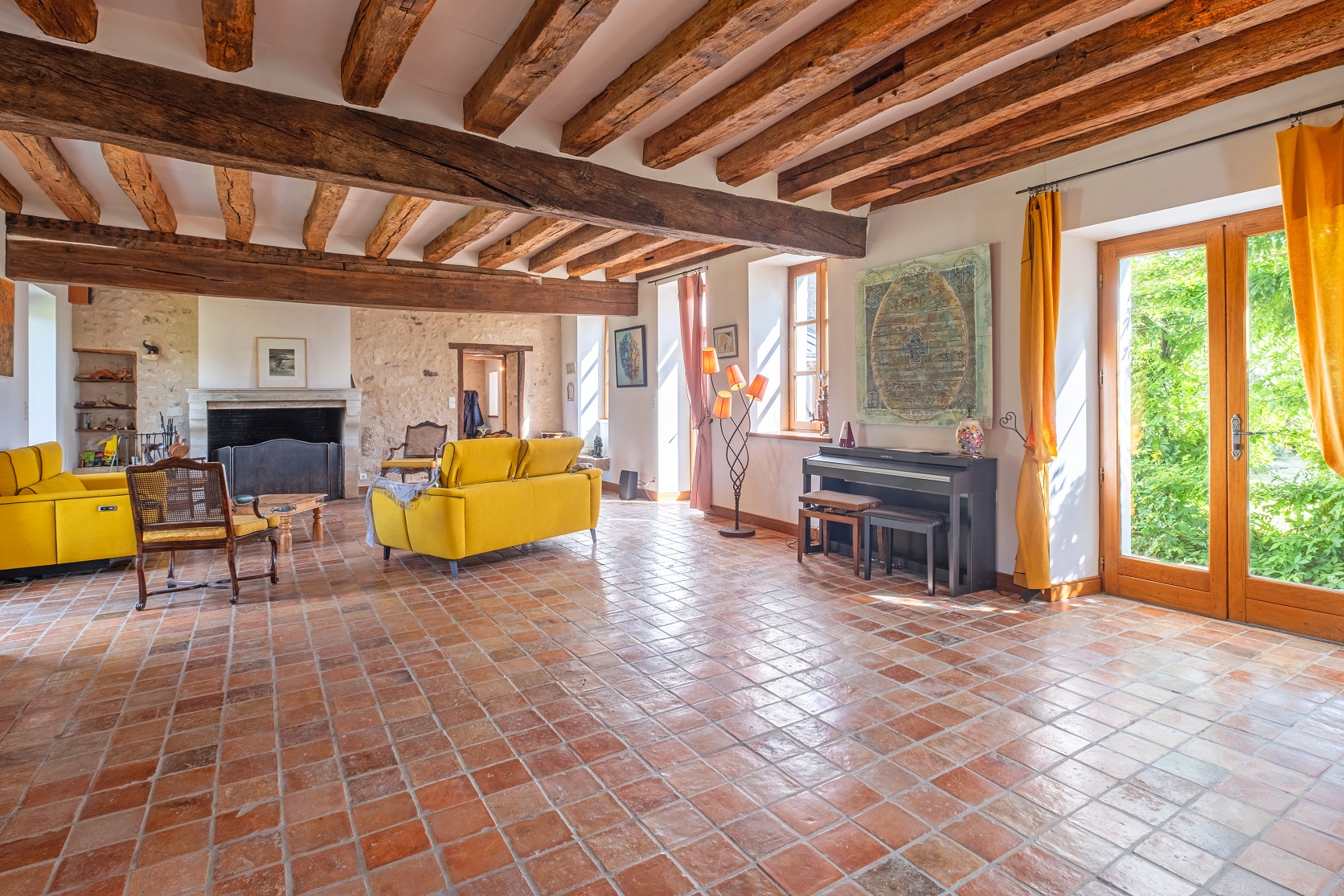 salon traversant de 70 m² avec cheminée, une belle salle-à-manger cathédrale,