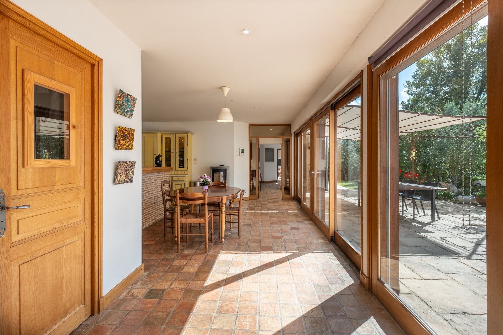 terrasse, 3 chambres au rez-de-chaussée, 2 salles de douche, un cellier et une