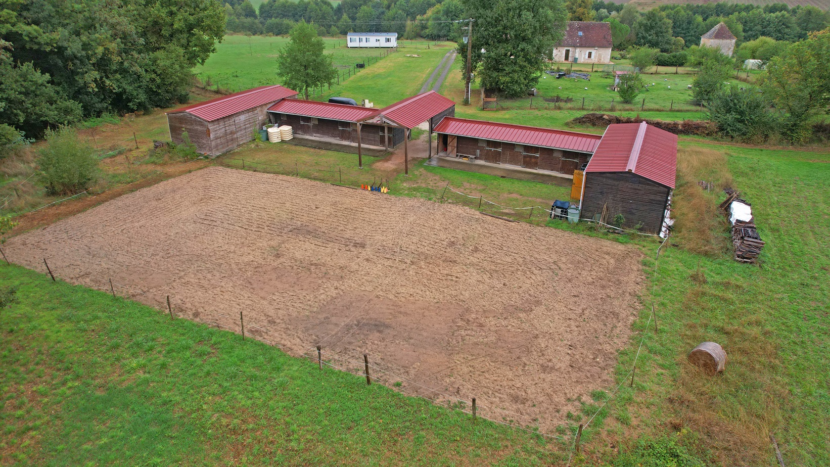 nature tout autour. 6 Boxes pour chevaux, une sellerie et une carrière drainée.